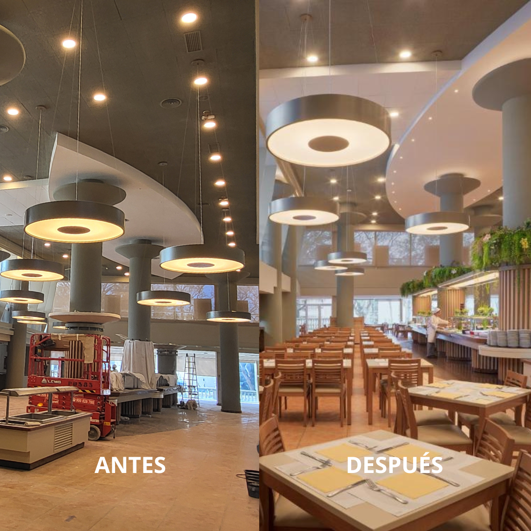 En el comedor del hotel, la iluminación debía cumplir dos funciones: